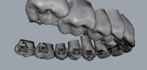 These custom orthodontic braces where designed using off the shelf CAD software, Rhino. The custom design brackets are then exported and 3D printed using a Concept printer. The brackets are printed in chrome cobalt using laser sintering technology. You can see the digitally design custom bases with their adaptors in the figure below.