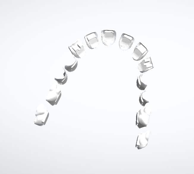 These custom orthodontic braces where designed using off the shelf CAD software, Rhino. The custom design brackets are then exported and 3D printed using a Concept printer. The brackets are printed in chrome cobalt using laser sintering technology. You can see the digitally design custom bases with their adaptors in the figure below.